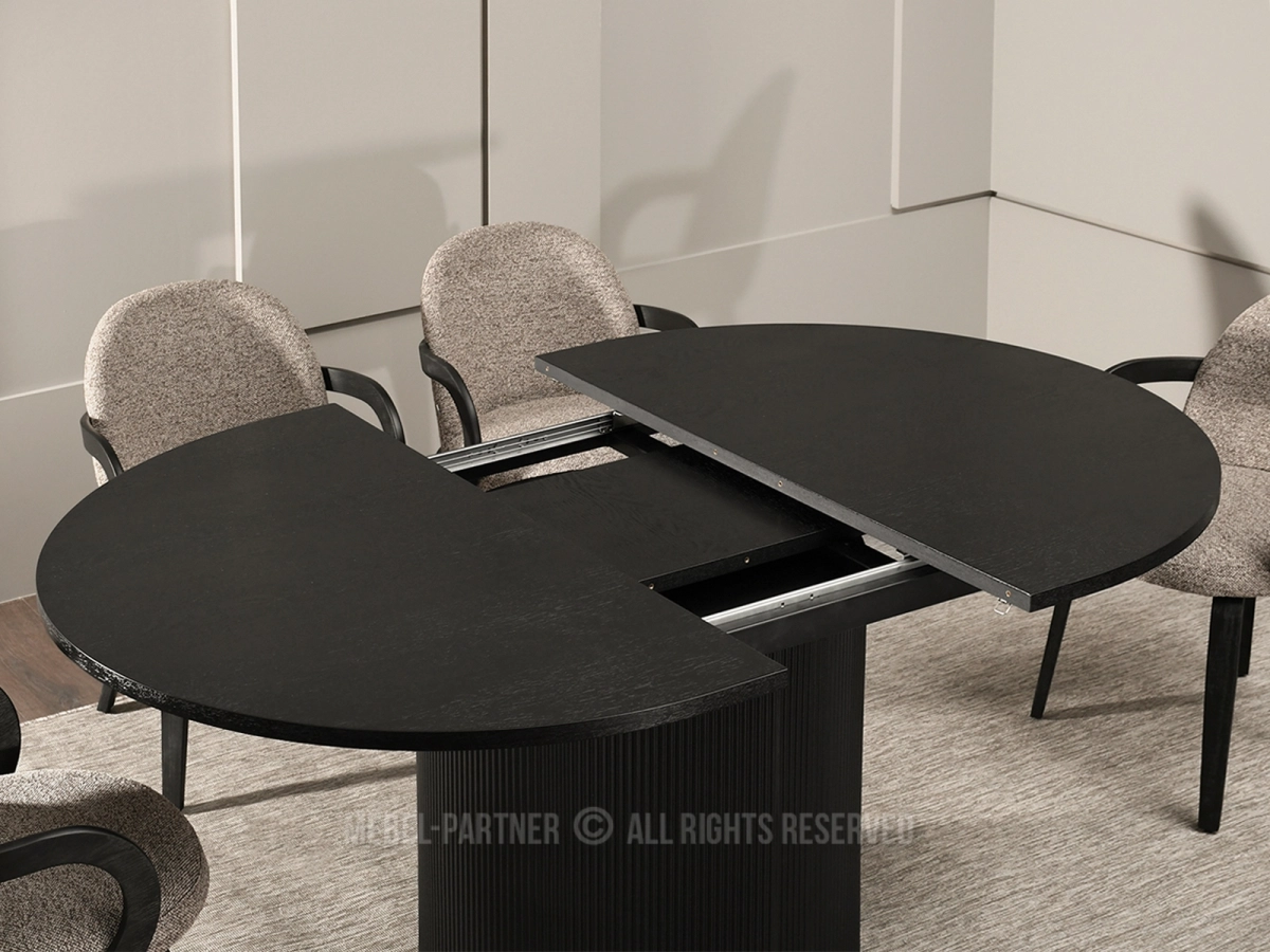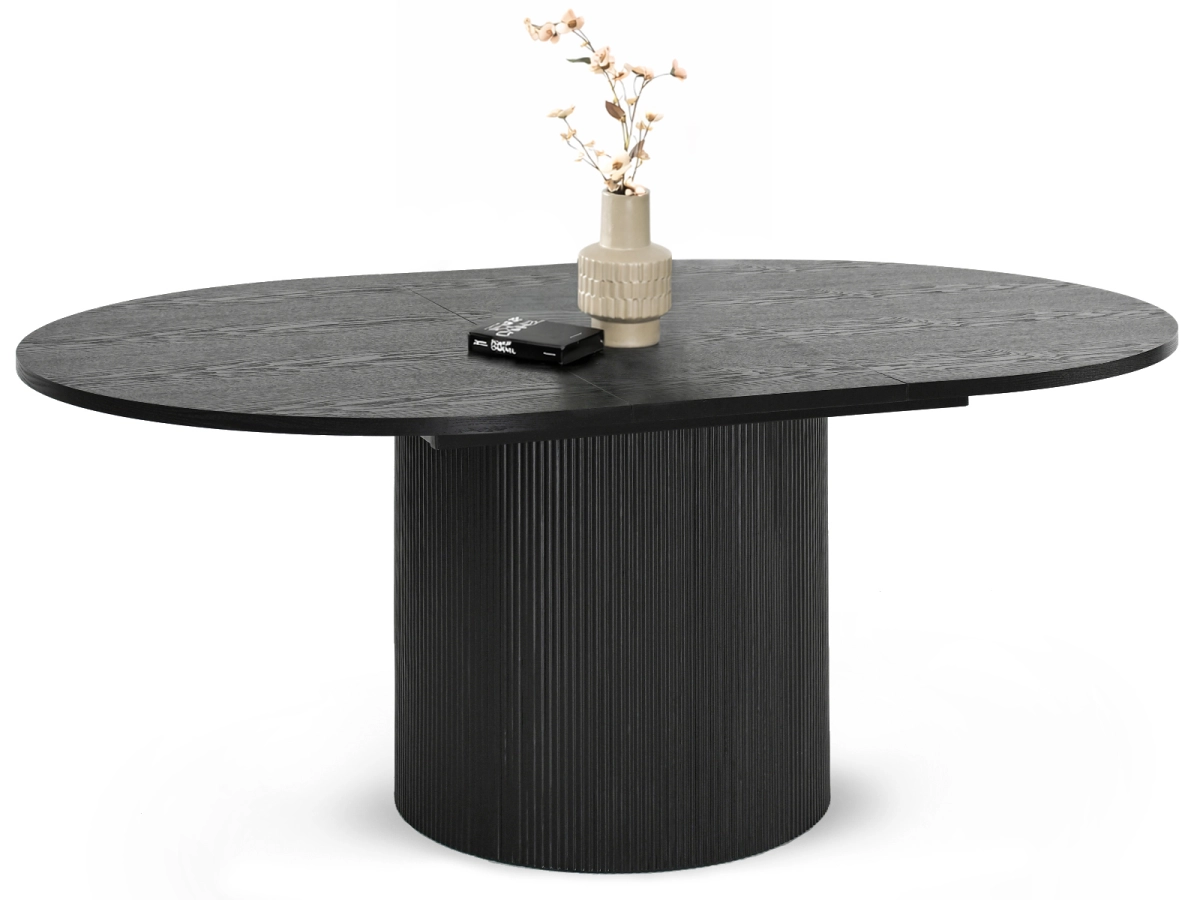 The Petra dining table combines style, flexibility, and comfort in one strong modern design. Its oval top creates a softer dining experience. Its extension feature gives you more room when needed. Its fluted black pedestal base adds a premium finish that stands out immediately.