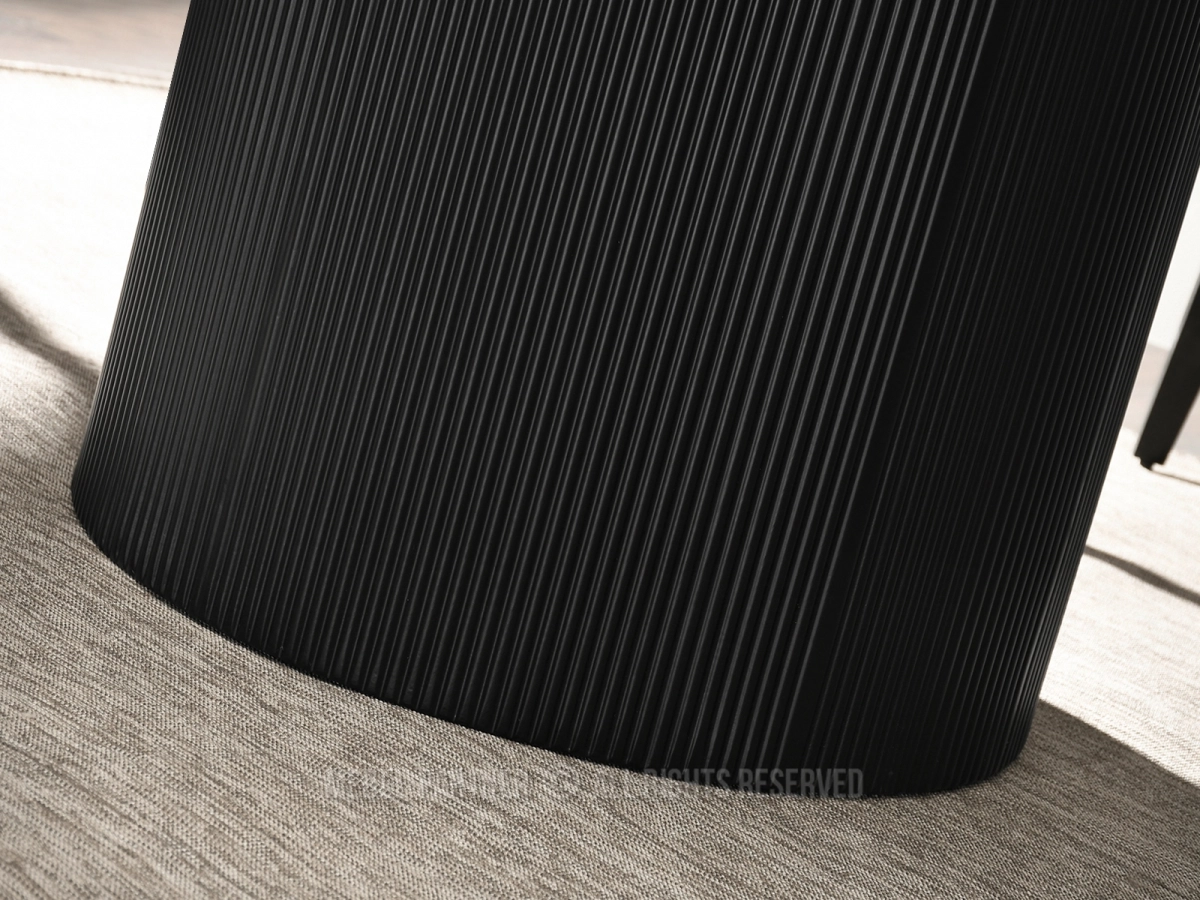 The Petra table is not only about the top. Its central pedestal base is one of the main design features. The fluted ribbed finish adds texture and depth, giving the table a more architectural and premium look.