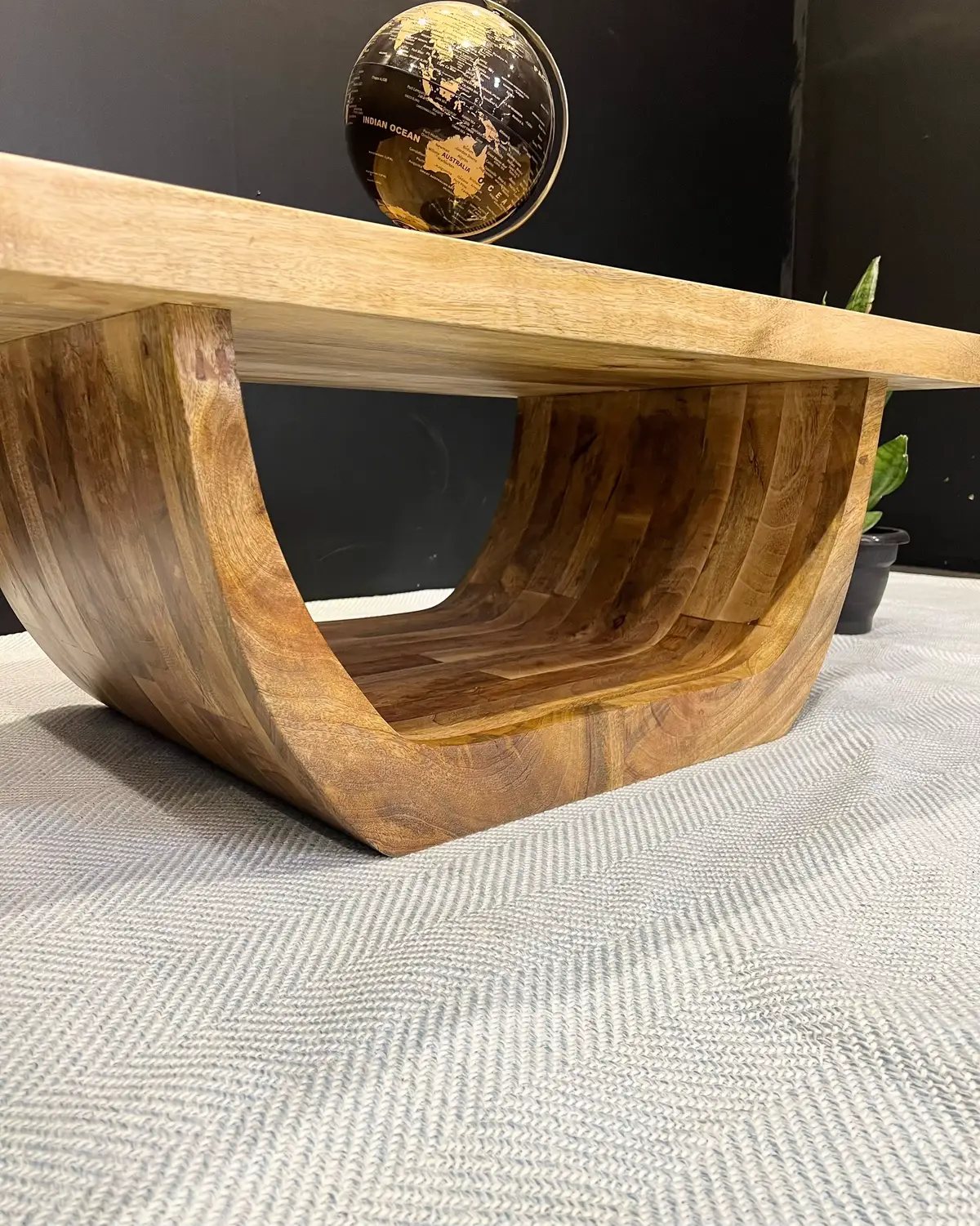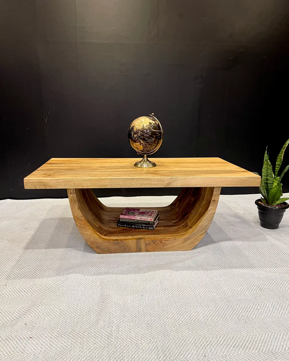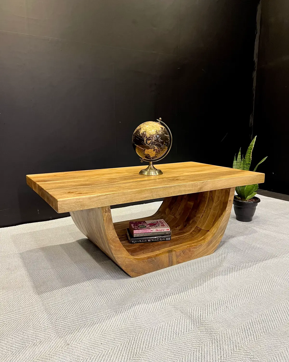 Modern Solid Wood Coffee Table with Curved Base Living Room Table Kenya