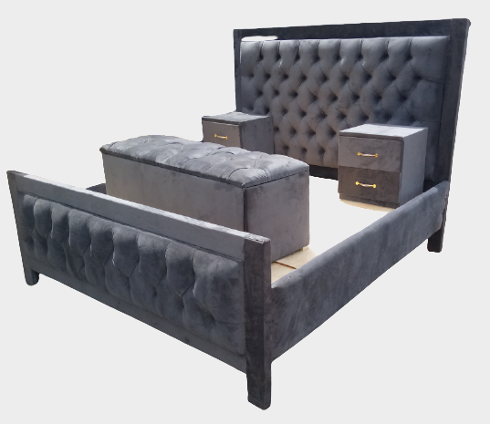 Be the first to review “Navy Blue Velvet Bed with Gold Accents – King Size Bed Frame with Matching Ottoman in Kenya”