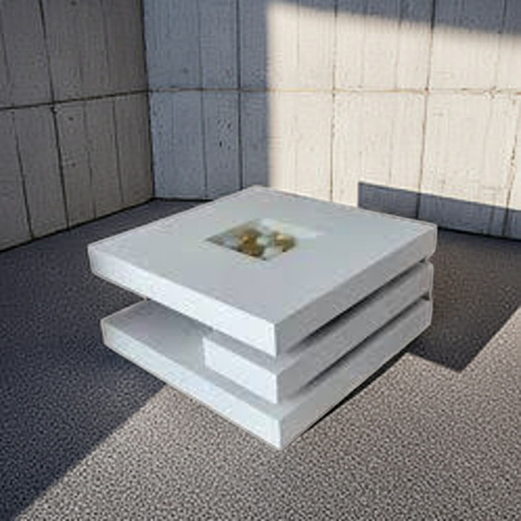 This white coffee table features a stacked layered form with clean edges and a smooth finish. The design adds depth while keeping the room calm and uncluttered. It suits modern Nairobi apartments and family living rooms.
