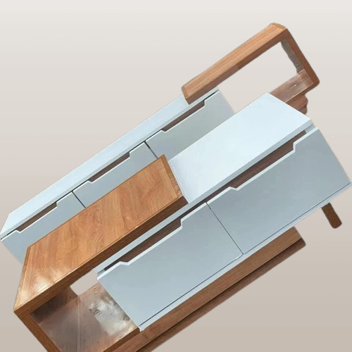 Add functional elegance to your living room with this contemporary wooden and gloss white TV stand, designed for the modern Nairobi lifestyle. Featuring a rich natural wood finish paired with sleek white high-gloss drawers, this unit offers the perfect blend of aesthetics and utility.